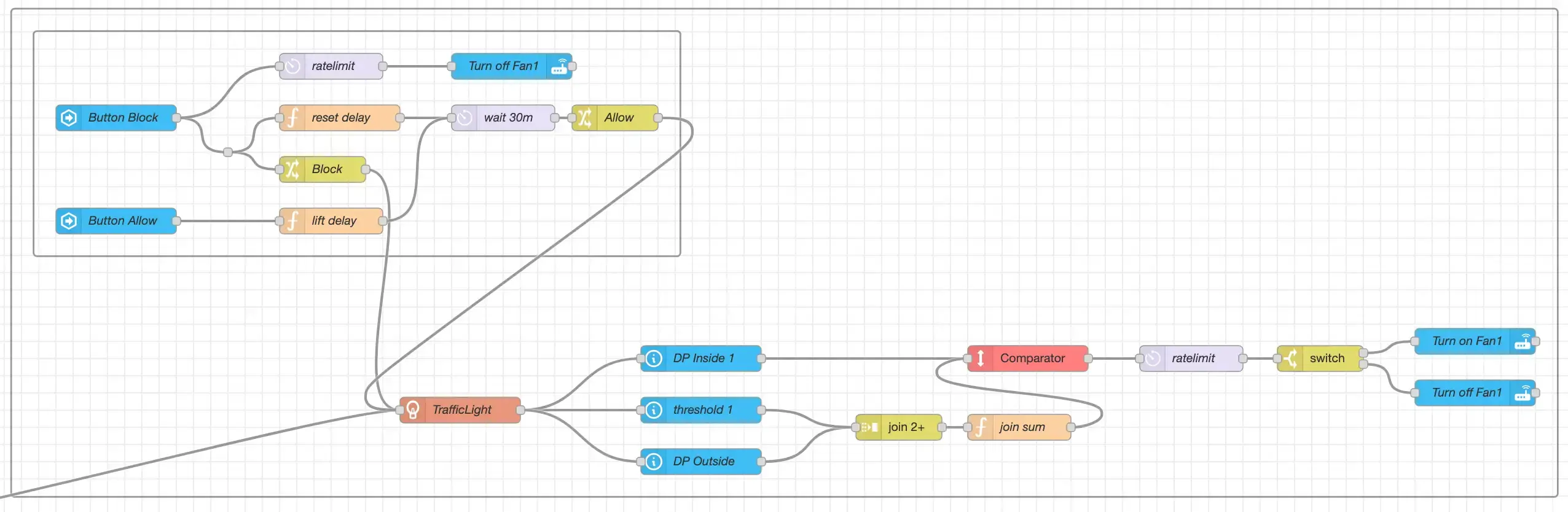 - Pause fan automation for 30 min (change delay node to adjust)