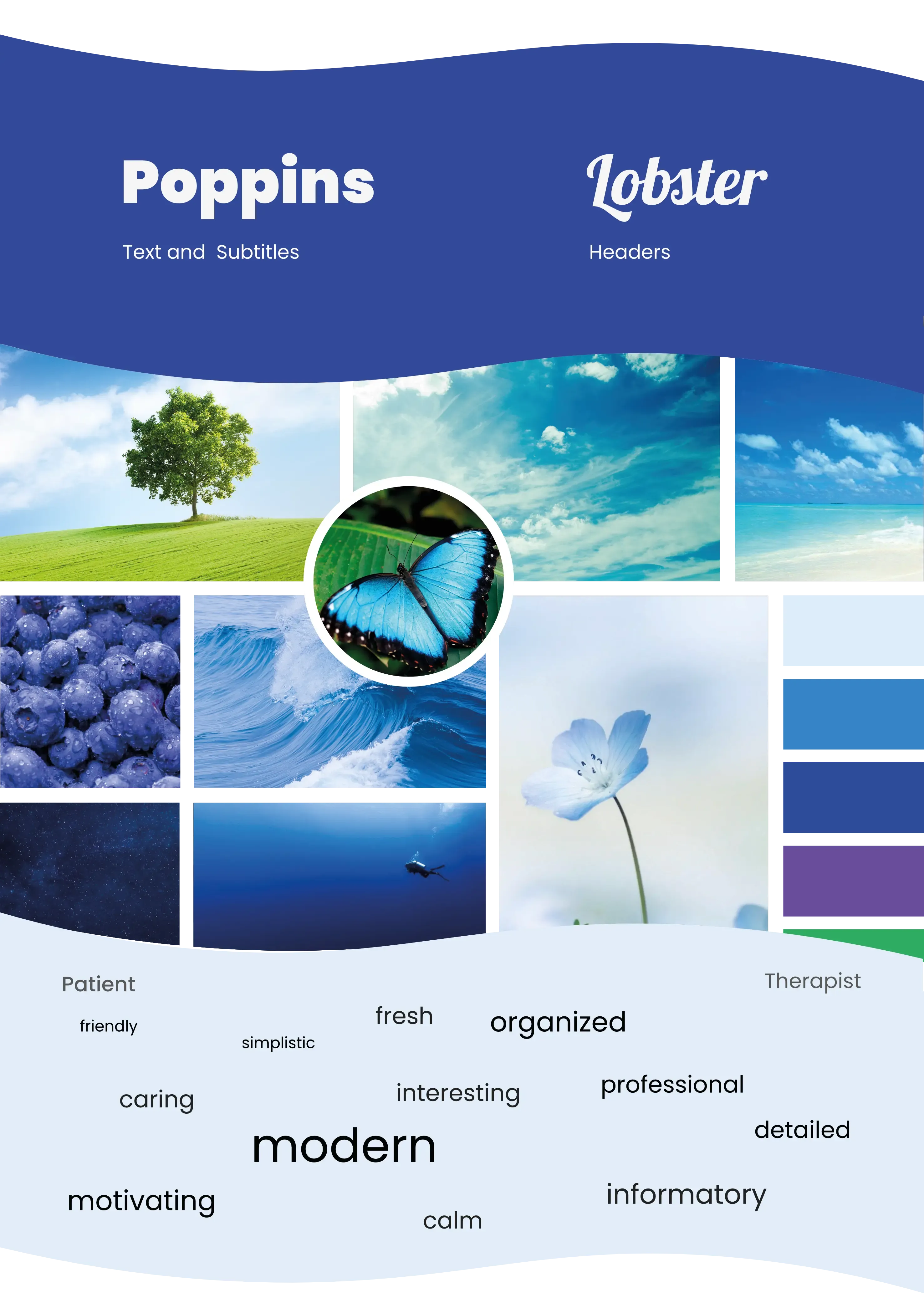 Once we established the layout, we moved to infuse color into our design. Using a mood board filled with suitable images, adjectives, and UI examples, we drew inspiration to invigorate our design. This included deciding on a particular font. Our key goal was to craft an interface that motivates the patient with its appeal and presents a professional, yet visually striking UI for the therapist.
