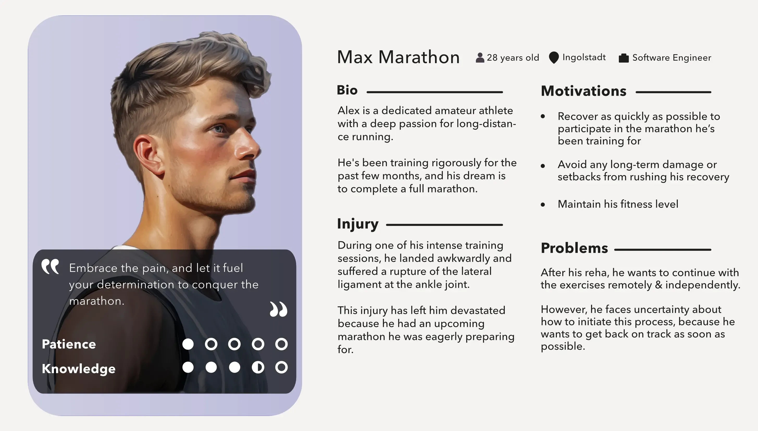 After that, we created multiple personas to better understand our target group and to be able to design the application with them in mind. We also created a user journey map to better understand the process of rehabilitation and to be able to identify the pain points of the user.