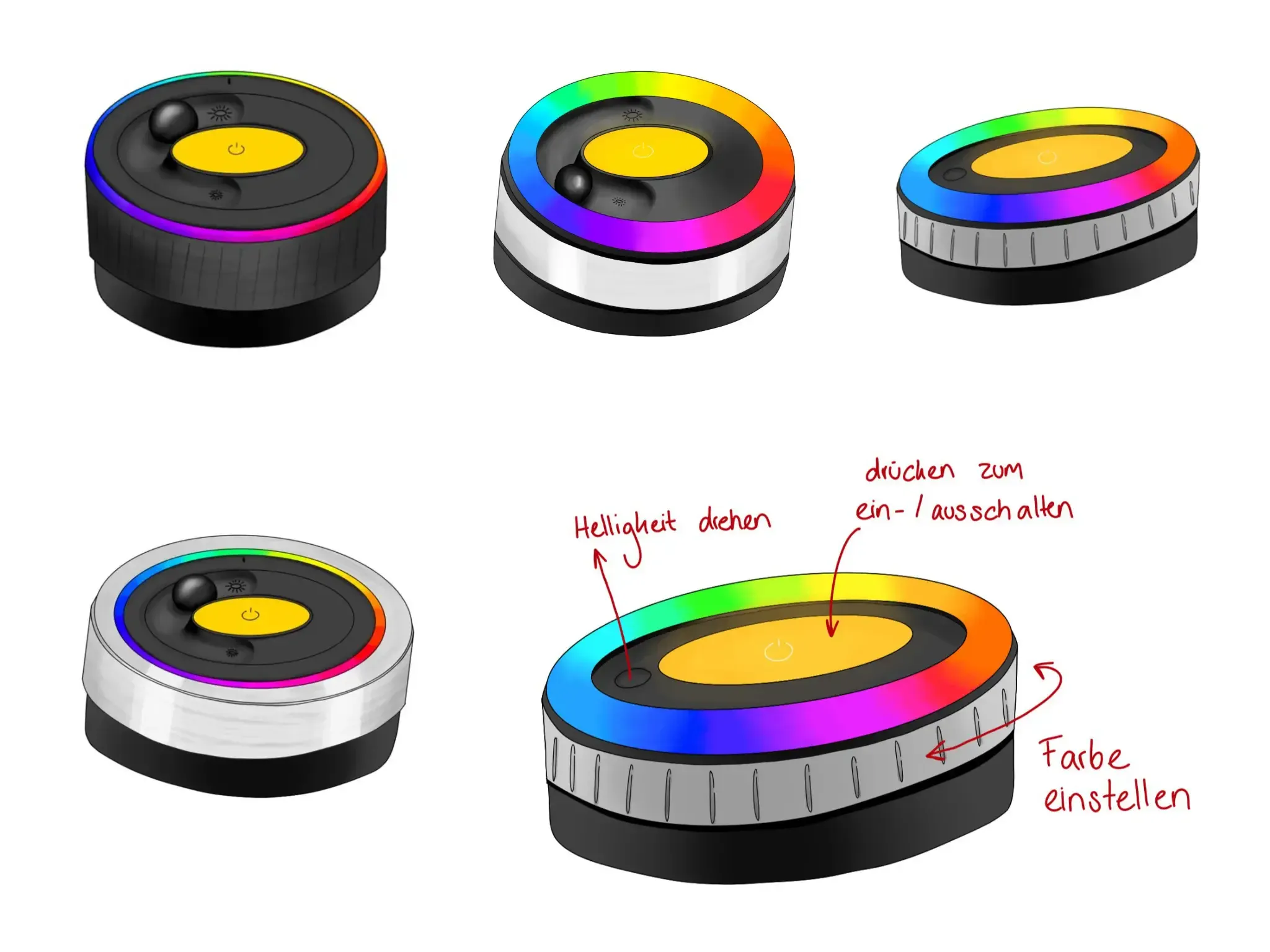 - Color Selection Dial: A rotary dial to choose the desired color indicated by the rgb ring.